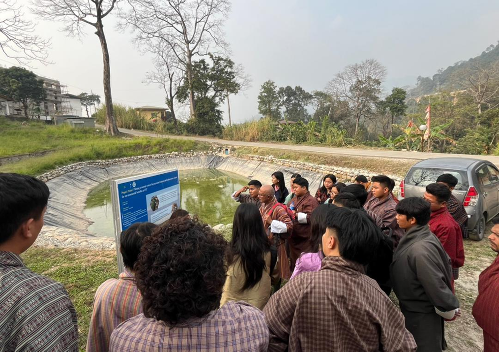 The training programmes covers, sessions on NbS, technical lectures on catchment works, landslide and torrent control measures, runoff computation, and flood risk management, as well as river modeling using RAS Mapper with hands-on practice. Practical learning was emphasized through site visits to the college’s Pond Site and Amochu Town Planning area (PTDP), and exercises on integrated infrastructure planning and bioswale design.